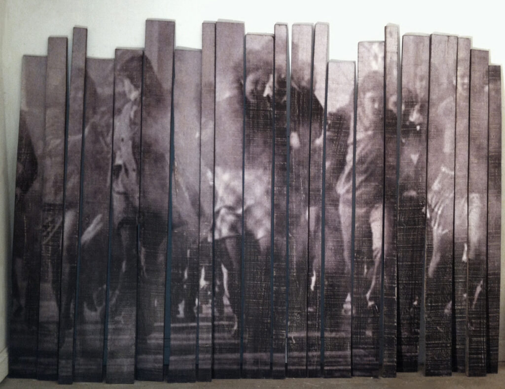 A este manifestante anónimo lo hemos visto, en otros tiempos, en las calles de París, Palestina, Estambul, Santiago de Chile, Berlín, Roma o Río de Janeiro. Sus causas son diversas. Sobre la fotografía de un manifestante boliviano que reprochaba la decisión de su Gobierno de exportar gas a Estados Unidos, el escritor español Juan José Millás ha dicho que “lleva toda la vida intentando pasar de un lado a otro de la historia” (2005, p. 37); se refiere al empeño de este sujeto de desprenderse de esa muralla que lo respalda para alcanzar, con sus gestos, el lado que lo excluye, lo margina, lo explota y lo denigra, para exigir un esquema de correlación diferente, justo y horizontal. Y concluye Millás: “Queda al menos la fotografía de ese hombre cuyos brazos aletean sobre la desigualdad y el caos como el espíritu de Dios, en el Génesis, aleteaba sobre las tinieblas antes de que se hiciera la luz” (p. 39). Pero no conocemos los fines de nuestro manifestante, y tampoco sabemos las causas o consecuencias de su acción. La fotografía que nos lo muestra tan solo revela el gesto que, como lo define Giorgio Agamben, no es un medio hacia un fin, ni un fin en sí mismo, sino un medio puro: “el gesto es la exhibición de una medialidad, el hacer visible un medio como tal” (2001, p. 54). Por medio de este gesto “no se produce ni se actúa, sino que se asume y se soporta” (p. 53). Por esto, de manera coincidente con las ideas de este filósofo, la imagen nos remonta a los estudios de finales del siglo XIX de Gilles de la Tourette, que analizan con huellas los pasos del ser humano para comprender su andar, y que fueron realizados casi al tiempo que los fotogramas de Muybridge, quien se esforzó por capturar los gestos más mínimos de humanos y animales. La imagen detenida del manifestante rescata la exhibición corporal, el medio expresivo que suspende un hecho del pasado y lo vuelve evidencia en el presente para proyectar un porvenir. En las calles, este manifestante queda sin expresión, pues lo que se expresa —lo que es atendido— es el golpe de la piedra, la confrontación de las partes y el inevitable barullo mediático. En el arte se rescata la expresión perdida y la manifestación mediática del cuerpo expresándose, en una pausa del tiempo cronológico, en un acontecimiento que tiene un presente continuo.