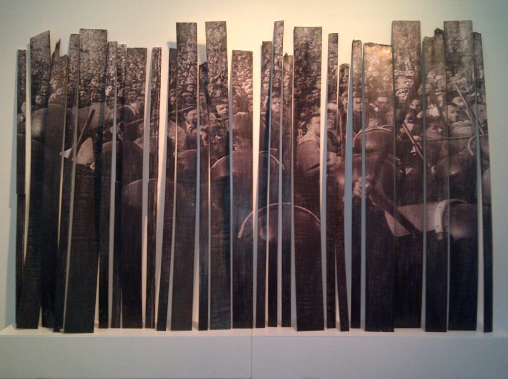 2. Como lo expresó Carol Damian (2005), respecto a la exposición Sombras del sur y del norte de Graciela Sacco en la Galería Diana Lowenstein, de Miami, los visitantes “se convirtieron en rostros entre la multitud, que aparecían y desaparecían como enigmáticos fragmentos de desconocidos, todos alineados para algún propósito igualmente desconocido”. Frente a estas sombras nos envolvemos en la proyección borrosa de la memoria de un gesto, aunque también podríamos convertirnos en sombras. De cierta manera, la obra nos introduce en el otro lado, al lado de los deseos de la multitud. Y si bien confrontamos a su pasado, que se muestra en un presente fragmentado, esperamos que el gesto del manifestante defina un destino, el mejor para nuestras sociedades.