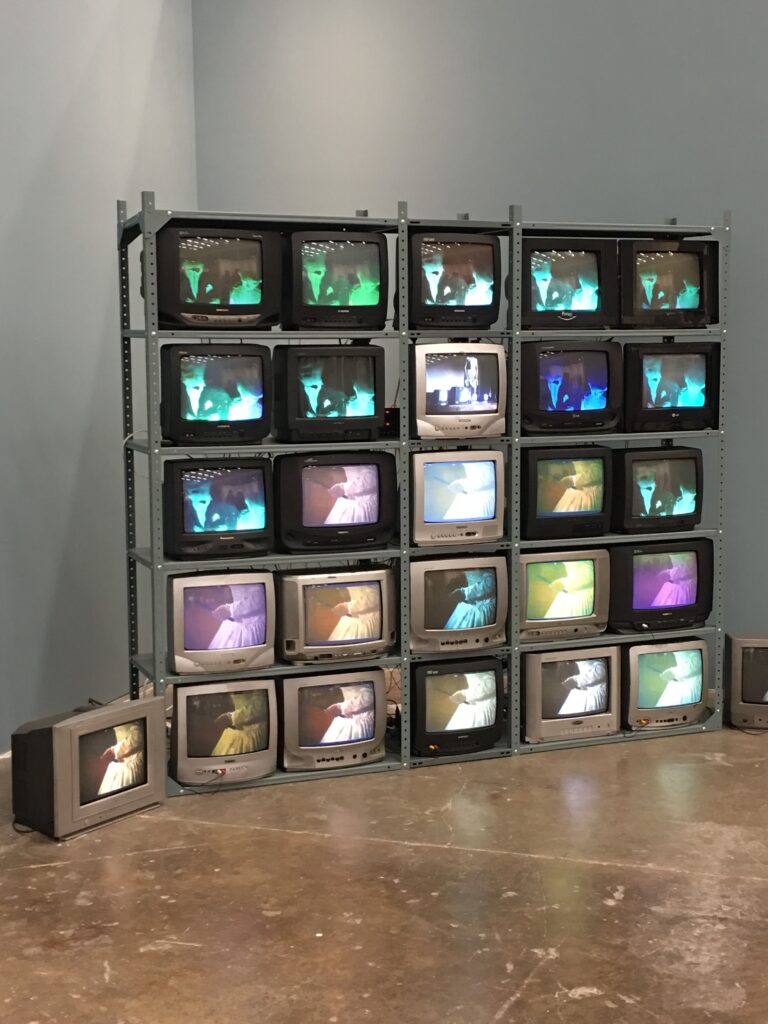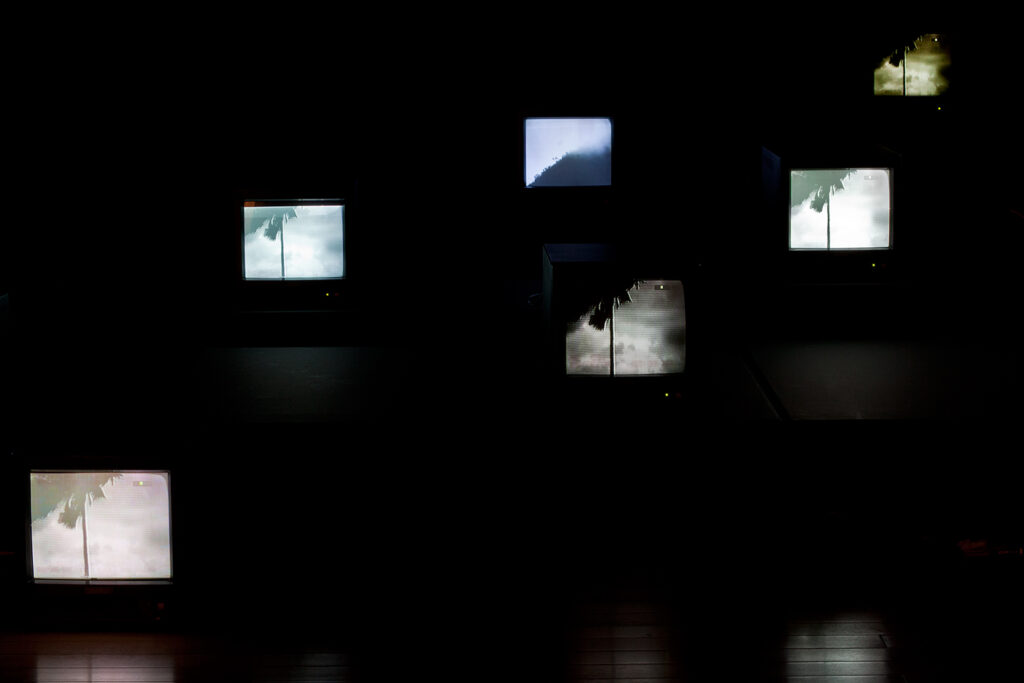 Three-channel video installation in thirteen monitors