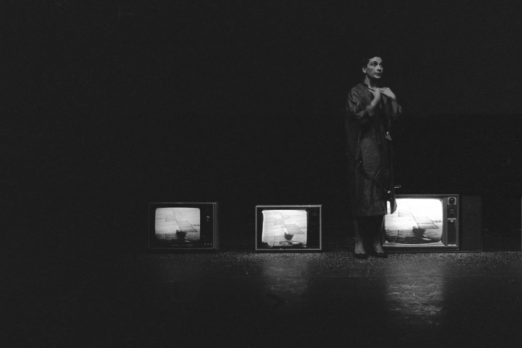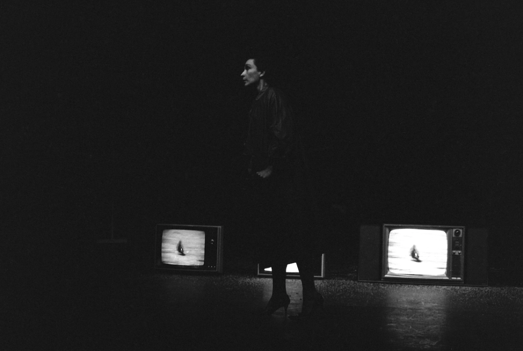 Video y acción concebida por José Alejandro Restrepo para ser interpretada por María Teresa Hincapié.