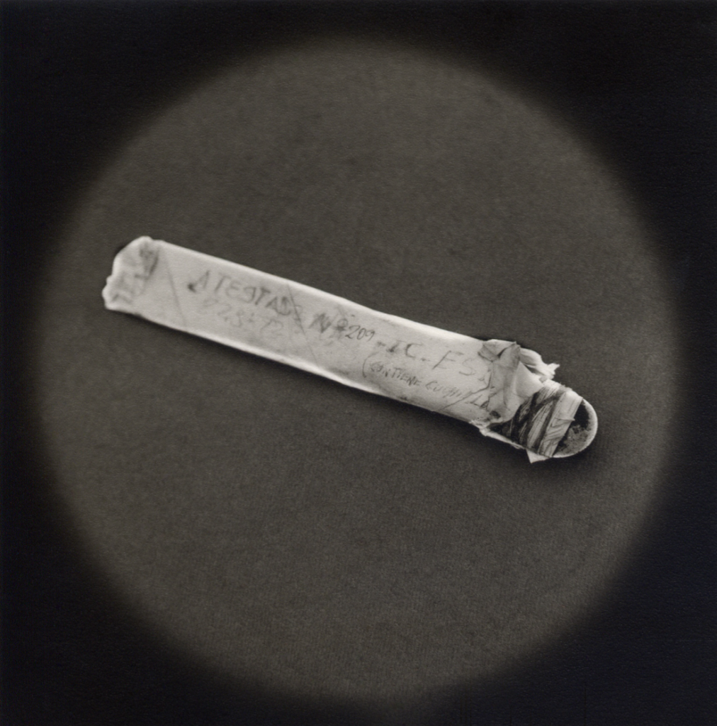 Rudimentary weapon made from broken bottle and paper. | Arma básica obtenida del fondo de una botella y papel., 1996