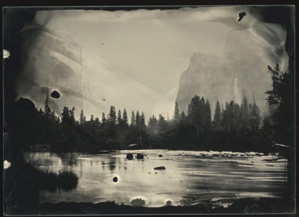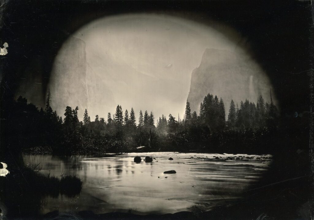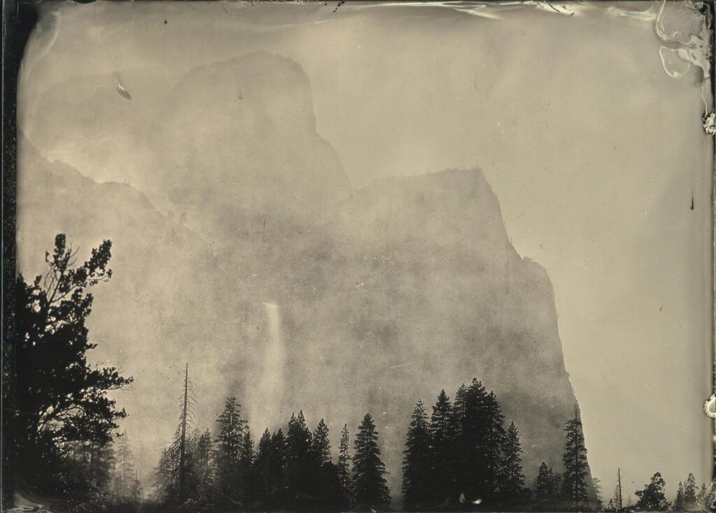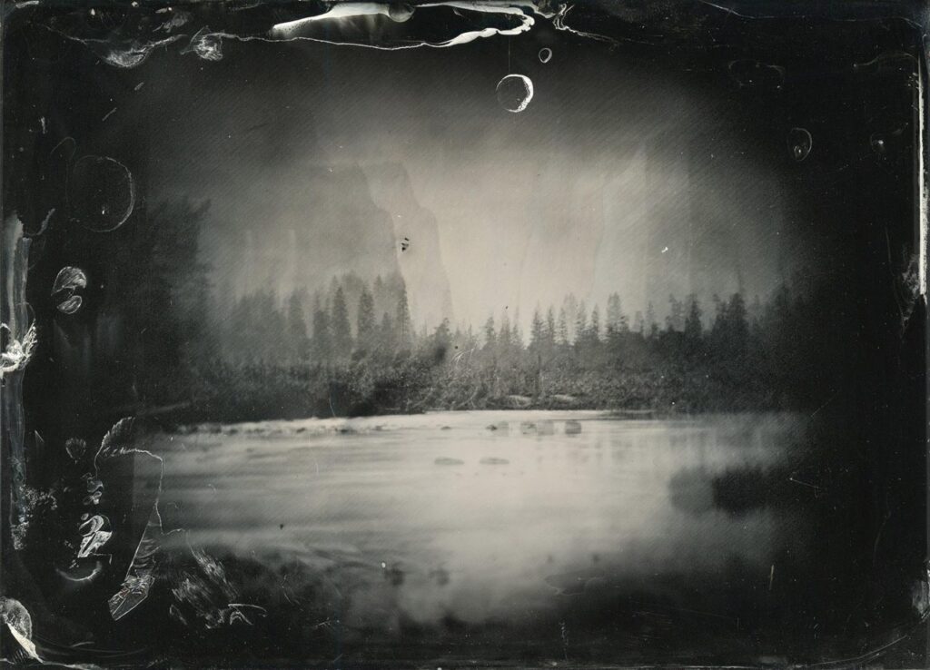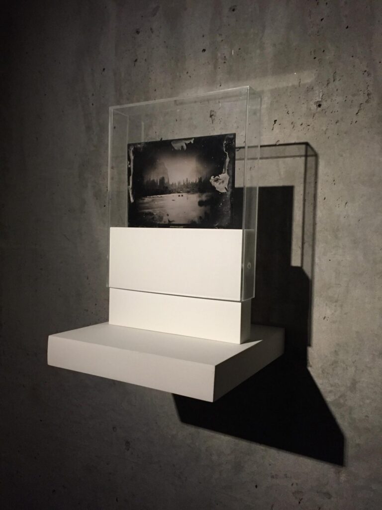 After years of obsessively working on the same figure, now she hides her gaze and slips away from the photographic fixation. Up close, it is reduced to a shapeless, flickering field of colored spots. In another movement, the artist makes the body return to the origin of those mysteries that modern individuation exorcised. “Mist” (2013), “Valley of the Yosemite, from Rocky Ford-1872” (2015) and “Exposure in real time” (2019) are some of her most outstanding works where Galbán shows a wide range of technical resources to address experiments that go beyond the quasi-pictorial plane -playing with the composition-decomposition of the image-, the techniques of appropriation of the images, intervening them, dissecting the supports and dissolving them in glass plates, until reaching the “relational exhibition”, a format that allows the artist to exercise deep experimentation with analogue support, actively involving the viewer in the process and in the resulting work. All her work in general, is the product of a point of view that emphasizes the different concepts and photographic techniques beyond the limits of the medium itself, prioritizing the procedures used over the final image, an image that is debated between what is intuited as form and what fades as such, adding to the debate other artistic practices from an interactive, performatic and even digital place.
