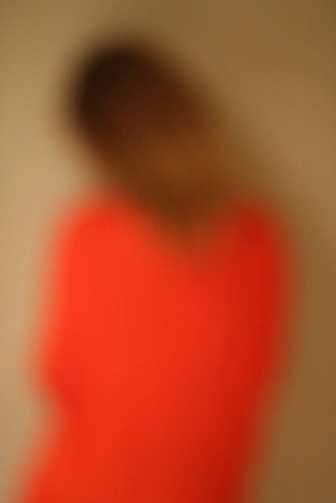 En el surgimiento de la Modernidad, junto a la invención del individuo, nació el género del retrato. El ser humano quiso separase del entramado de relatos misterio- sos que empastaban la Tierra con las divinidades, y las personas con las bestias, y asegurarse una identidad distintiva. En una segunda línea de fuga, Vivian Galbán somete el orgullo del retrato a la disolución. La figura esconde su mirada y se escabu- lle de la fijación fotográfica. De cerca, se reduce a un campo informe y titilante de manchas de color.