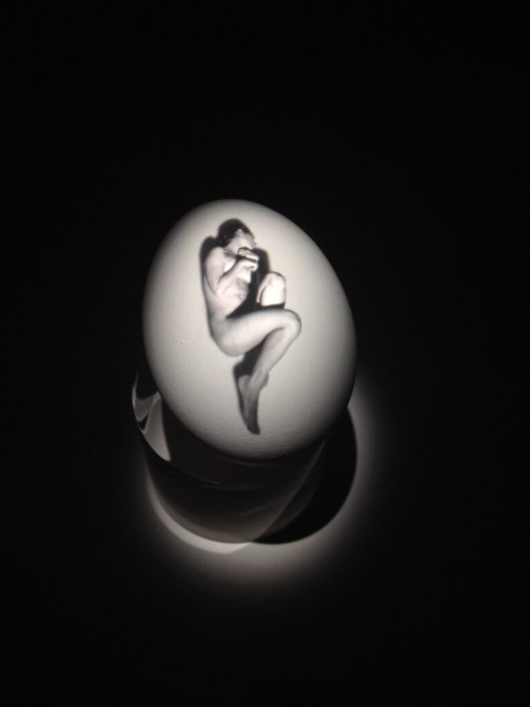 Borges imaginó una esfera que, en dos o tres centímetros, reúne el cosmos. Vivian Galbán, en una figura femenina del tamaño de un huevo, concentra la fuerza de la vida. Pura fuerza sin extensión, sin acontecimientos, que cifra también nuestra ignorancia. No sabemos lo que puede un cuerpo, dijo Spinoza, porque siempre la conciencia que tenemos de él es inferior a su potencia. Fuera del embrión, acecha el mundo. En las cajas de luz, tiempo y espacio someten el cuerpo a una línea de fuga que lo vuelve impreciso e inasible, como una suerte de Muybridge fantasmático. Aún aquello que es objeto de nuestra atención, se escurre como el inconcebible universo.