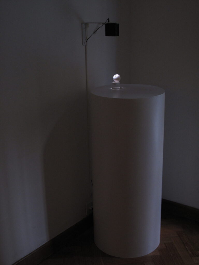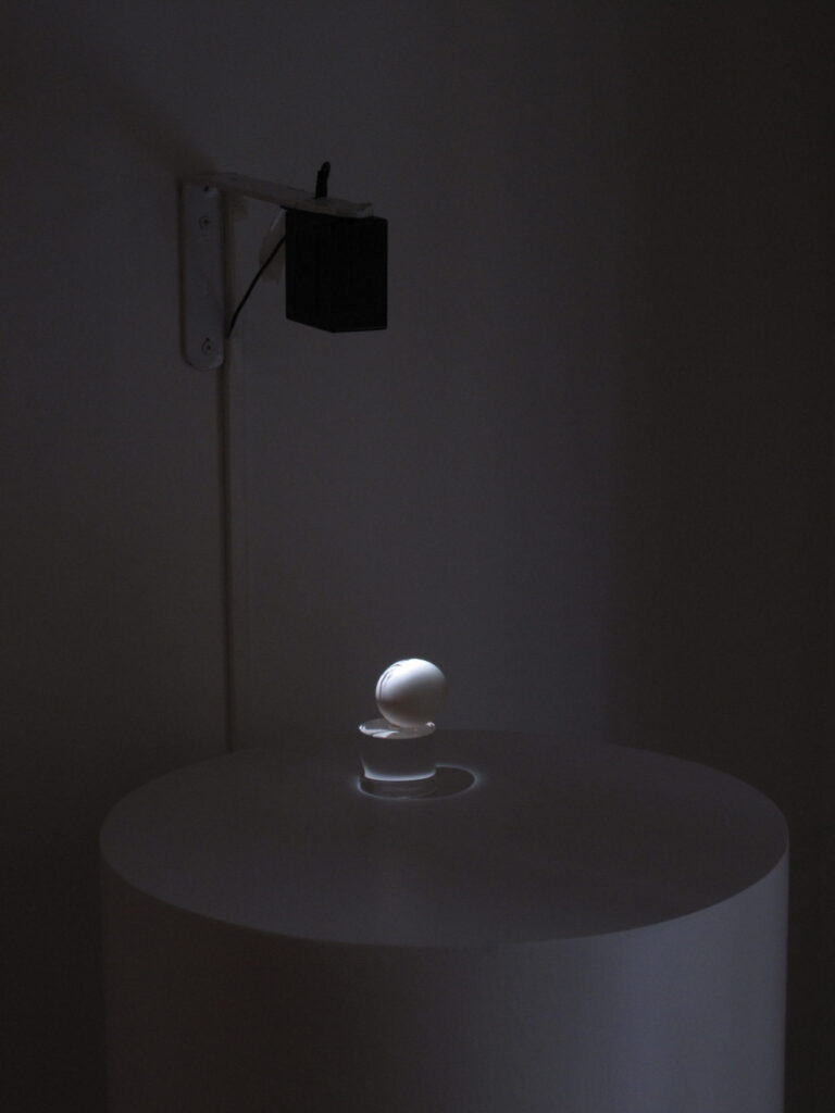 En dialogo conceptual con la fotos, la videoinstalación, se pone en relación a esta pieza, en la repetición del movimiento realentado en loop, en ese gesto la pieza recupera una y otra vez ese estado de perfección. Intenta hacer eterna una epifanía.