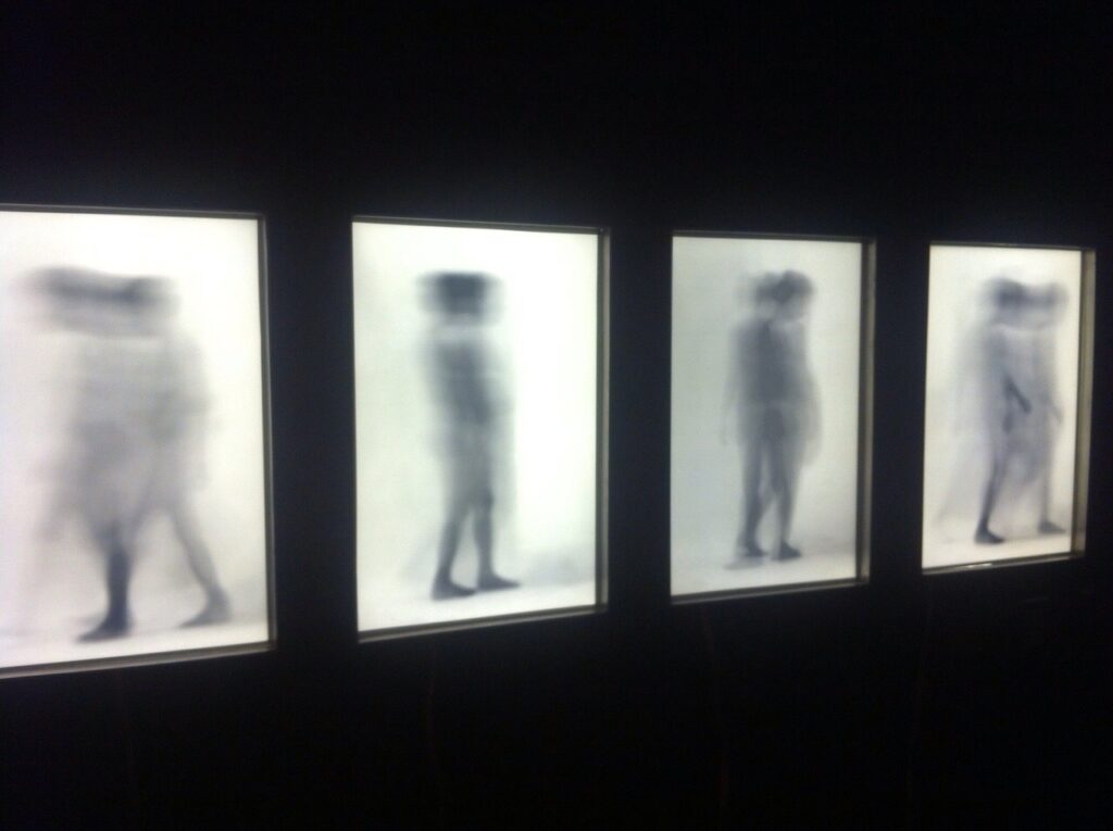 Una secuencia de cajas de luz, tiempo y espacio somete el cuerpo a una línea de fuga que lo vuelve impreciso e inasible, como una suerte de Muybridge fantasmático. No obstante, allí donde la semejanza se esfuma, revela la fotografía su poder distintivo porque, aún indescifrable, se trata de la huella material de una existencia.