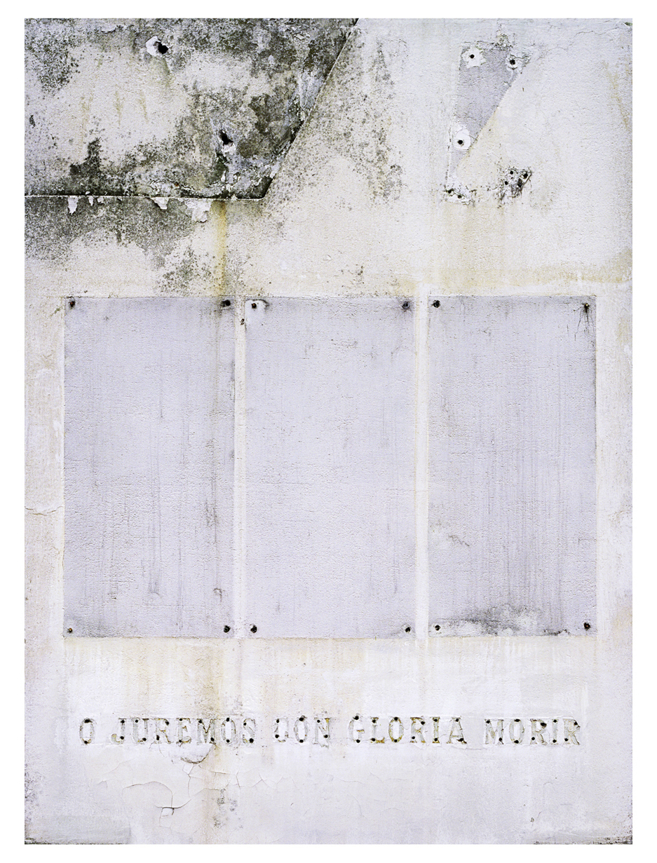 De técnica preciosista, encuadre frontal y gran tamaño, las fotografías parecen bastarse con tan solo un efecto deno- tativo. Es el acto de fotografiar, el convertir la cosa en imagen lo que hace más tangible y presente la densidad de la historia. El verdadero destino de las imágenes de Santiago Porter es servir a una memoria constructiva que interpelan- do el pasado disponga el tablero para otro juego de la historia. 1