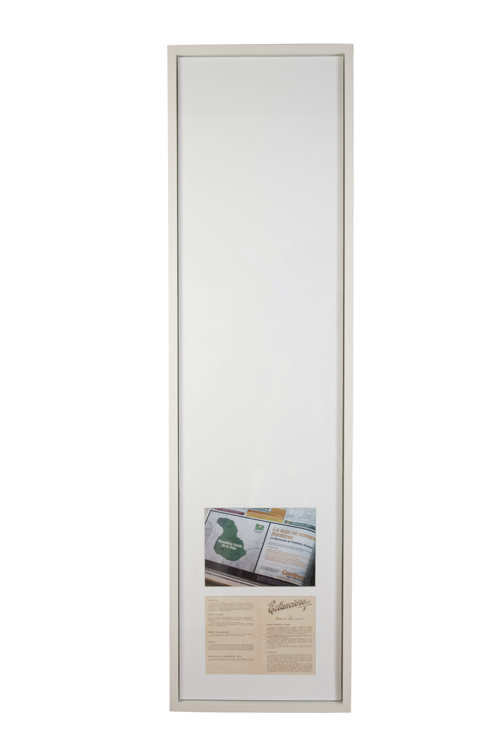 exhibe artefactos visuales que focalizan en aspectos de la dinámica actual de la industria agrícola en Sudamérica.