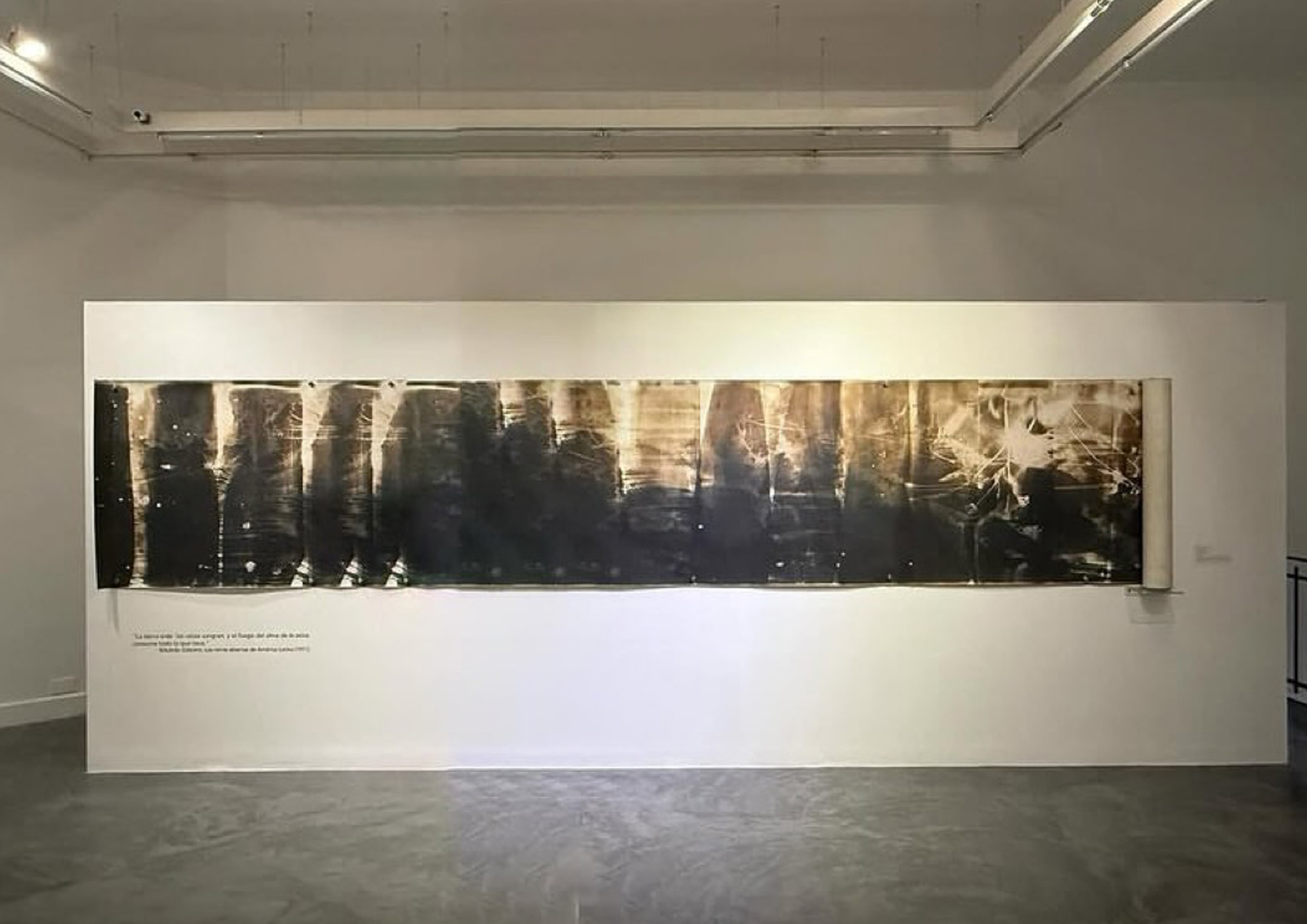 The exhibition brings together the monumental photograms from the Amazogramas and Bamboo Forests series by ROBERTO HUARCAYA (1959, Peru)—a key figure in contemporary Peruvian photography—recently shown at the Venice Biennale 2024 [Italy], awarded the Prix Pictet 2025 [UK], and currently featured in a retrospective exhibition at MARCO Vigo [Spain]; the linoleum print murals from La vorágine más allá: Macharoko by MAPA TEATRO (1984, Colombia)—a laboratory for transdisciplinary experimentation—presented at the Bienal das Amazônias 2025 [Brazil] and at the Musée du Quai Branly [France], and selected among ArtForum’s Top Ten Exhibitions of 2024; the historic print series América Equinoxial by JOSÉ ALEJANDRO RESTREPO (b. 1959, Colombia)—a master printer and a central figure in Latin American video art—currently on view in the galleries of MoMA [USA]; the iconic video installations Treno and Río por asalto by CLEMENCIA ECHEVERRI (b. 1950, Colombia)—a pioneer of video art in Latin America—seminal works within her audiovisual practice, prominently featured in her major retrospective Liminal at the Museo del Banco de la República in 2019 [Colombia], and previously presented at Les Abattoirs in 2017 [France] and the Shanghai Biennale in 2018, respectively; and Braceros by CRISTINA PIFFER (b. 1953, Argentina)—a leading figure in Argentine conceptual art, focused on the materialism of the image—a work that reactivates archival materials linked to the exploitation and forced labor of Indigenous peoples in northern Argentina.